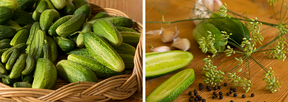 Crisp dill pickles infused with garlic and black peppercorns marry perfectly with hot and cold smoked meats and seafood. Thriving in the summer heat, pickling cucumbers need to the picked and processed daily.