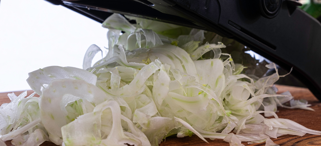 Thoroughly wash the fennel, celery and turnip, herbs and fresh chili. Remove any damaged sections or tough stalks. Cut the fennel in half and finely slice with a sharp knife, a mandolin, or a food processor with the slicing blade attachment. Slice the celery stalks to the same width as the fennel. Remove the remaining roots section from the turnip, peel and finely grate.