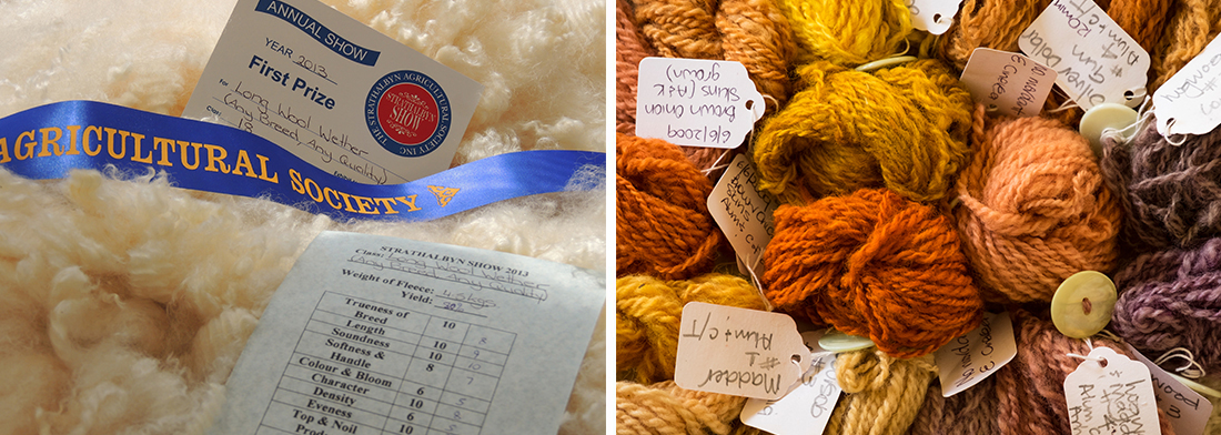 It didn’t take long for the boys to settle in with Star and Gerry, the two resident Border Leicester x Merino lawn movers. Tamed by the constant loving attention and handling by my sister- in- law, a true animal whisper, they have been named Frank, Cheeky, Sammy, Woody and Chocko. Living an idyllic life they reward us with what they do best – beautiful fleece.The cross between Corridale, Romney Marsh and Finn produces a truly magnificent hand spinning fleece. Kept coated except for shearing, their fleeces are clean and free from seeds and general pasture debris. With a consistent staple length of 11-13 cm over the past four years and 25- 30 microns, it’s lustrous with a soft handle and is easy to spin. A hand spinner’s delight and perfect for garments that are worn close to the skin and sooooo much easier than spinning fine Merino fleece.